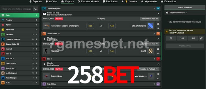 O 258BET oferece uma grande seleção de opções de apostas em e-sports com probabilidades competitivas